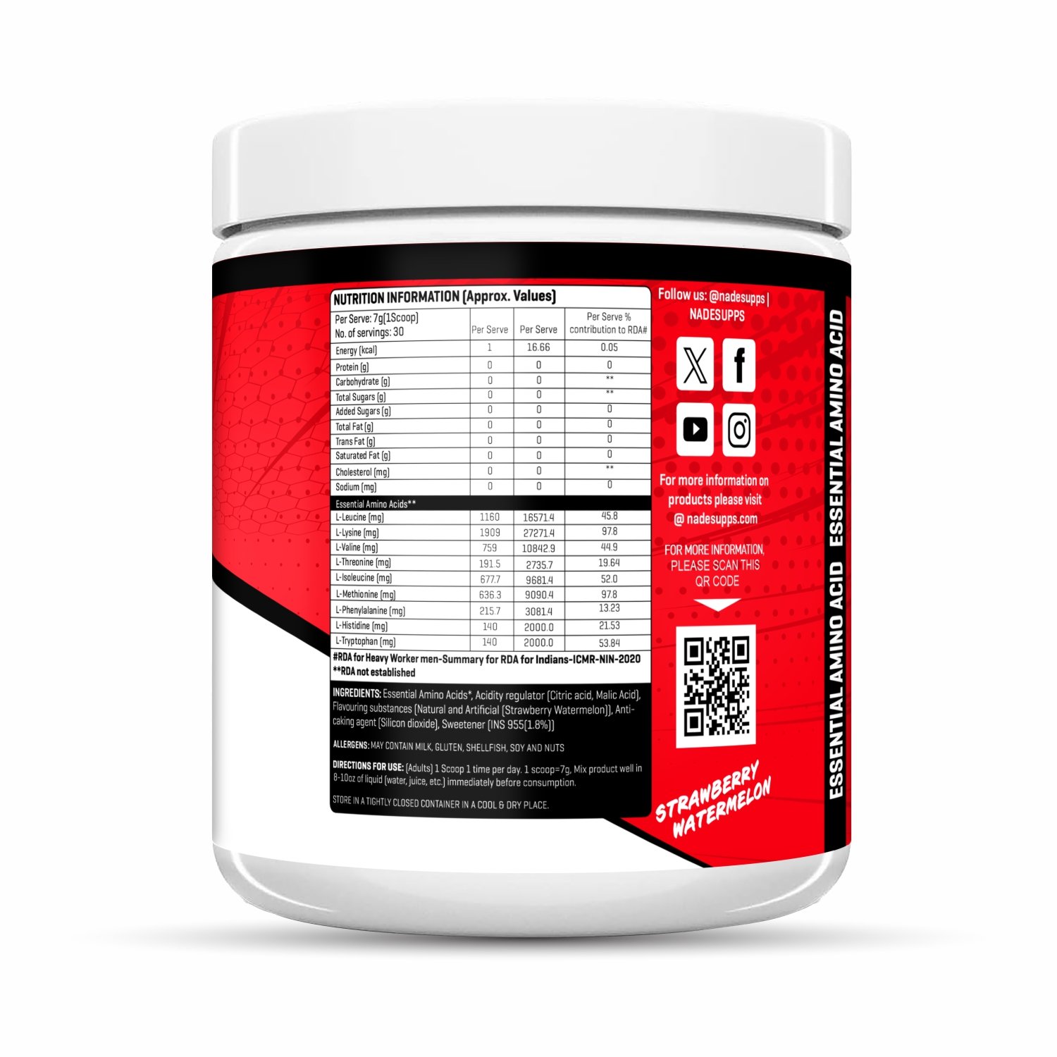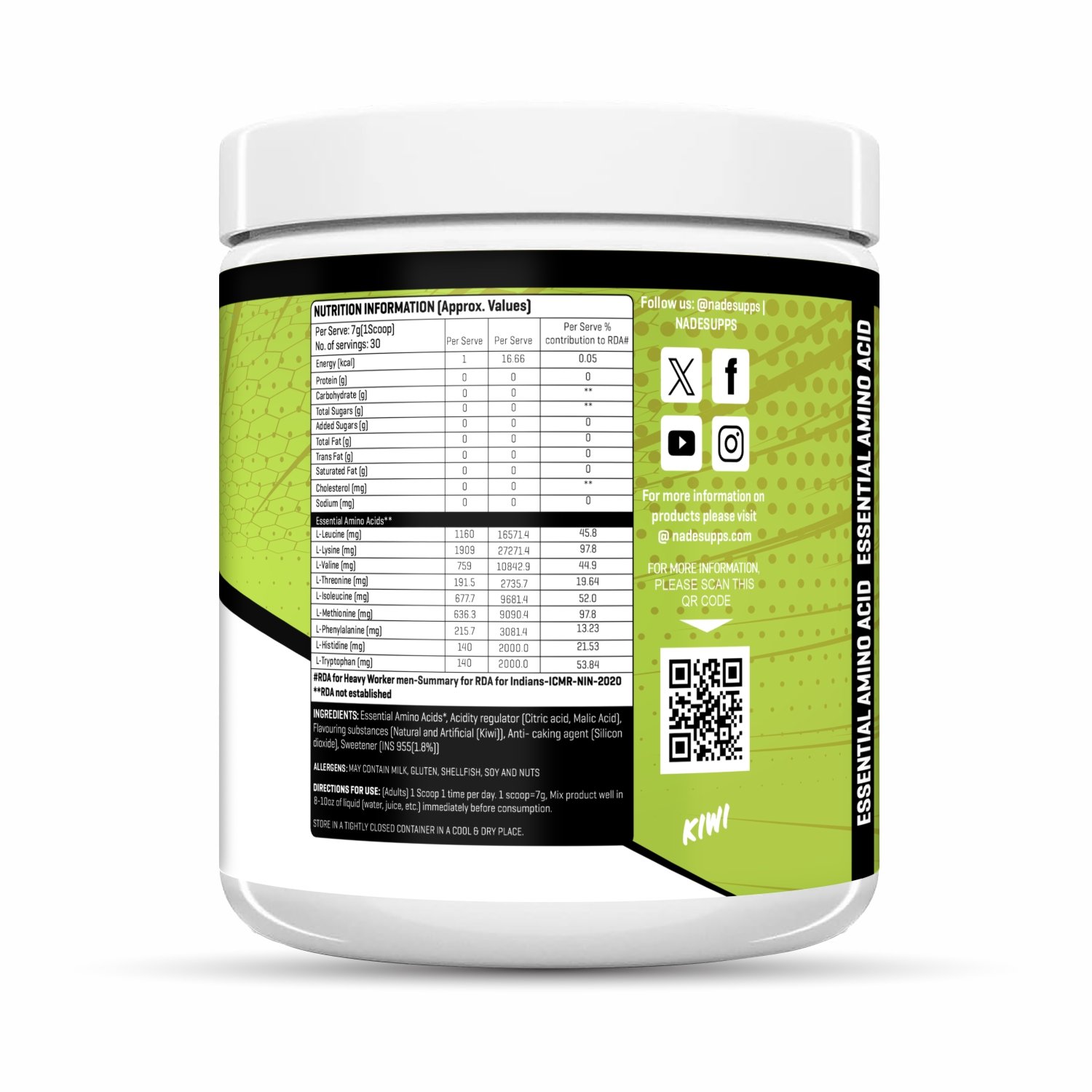 NadeSupps EAA Intra-Workout delivers a scientifically optimized blend of 5.8g Essential Amino Acids (EAAs) per serving to support endurance, hydration, and lean muscle recovery. Designed to fuel performance across all forms of training—from lifting and sprinting to long-distance cardio—this formula helps reduce fatigue and promote faster repair of muscle tissues.